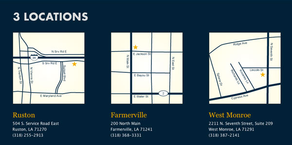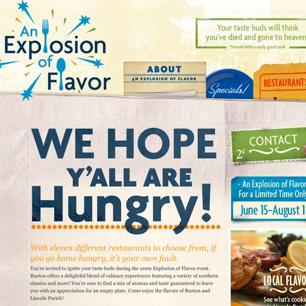 Web design, copy writing and front end programming for a Ruston Convention and Visitors Bureau website.